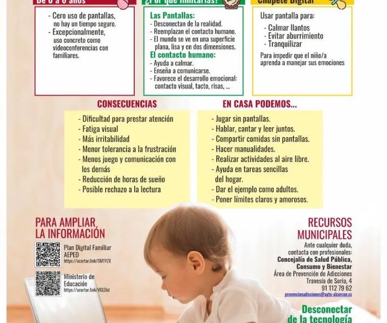 • El Ayuntamiento de Alcorcón, a través de la Concejalía de Salud Pública, Consumo y Bienestar Animal, lanza una campaña de sensibilización y prevención sobre el uso de pantallas dirigida a familias, infancia y adolescencia.