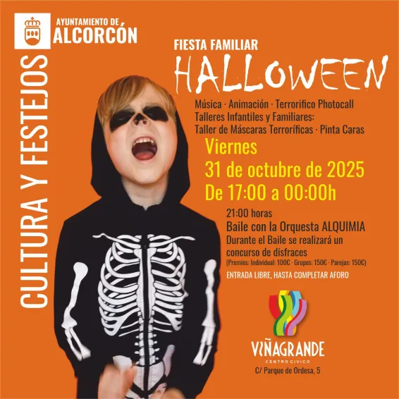 El Centro Cívico Viñagrande acogerá una gran ‘Fiesta Halloween para todas las edades’, organizada por Cultura, que contará con música, animación, un photocall terrorífico, un pintacaras, así como talleres infantiles y familiares y de máscaras terroríficas.