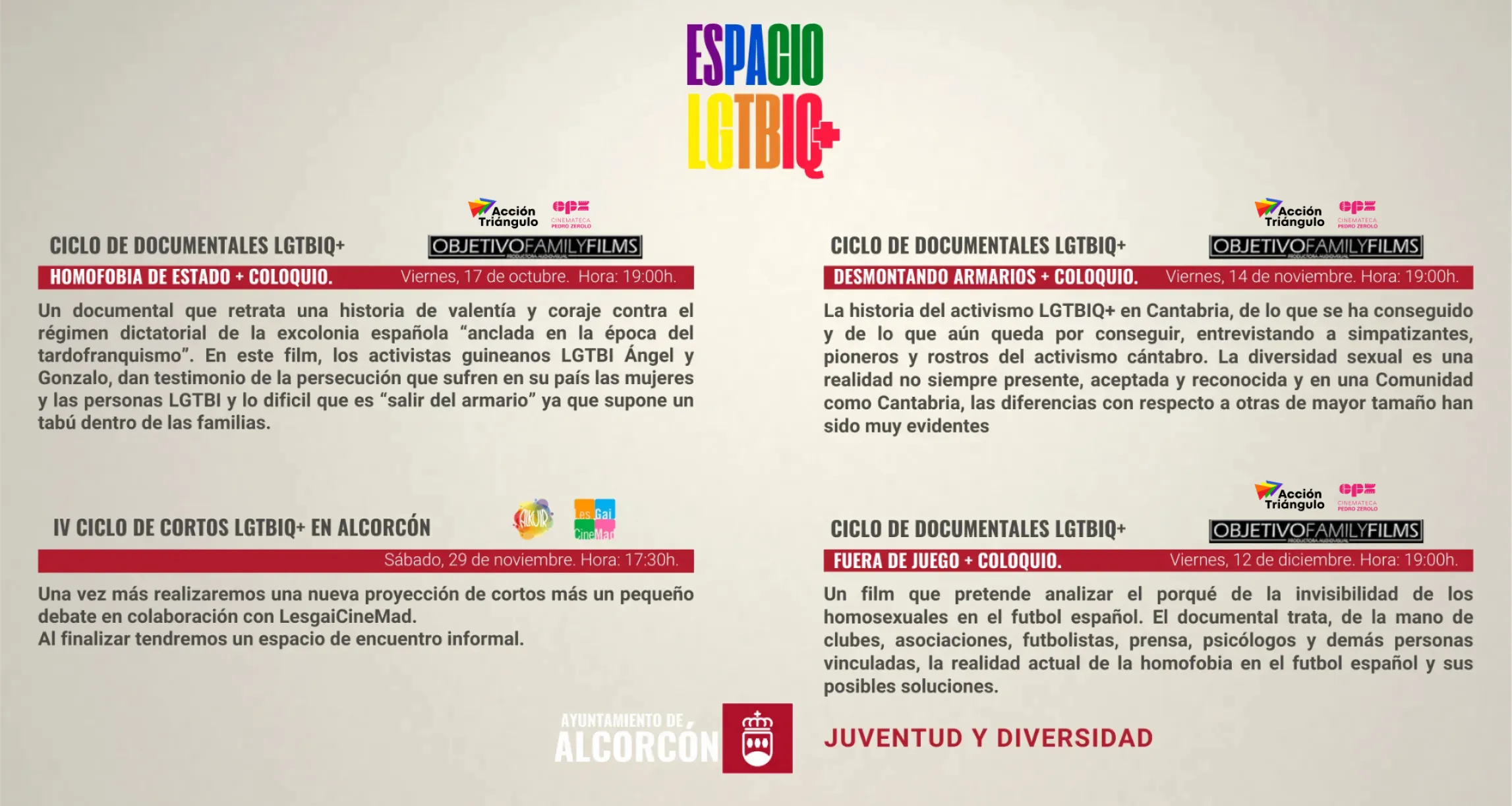 IV Ciclo de cortos LGTBIQ+ en Alcorcón. Sábado, 29 de noviembre. Hora: 17:30h.
